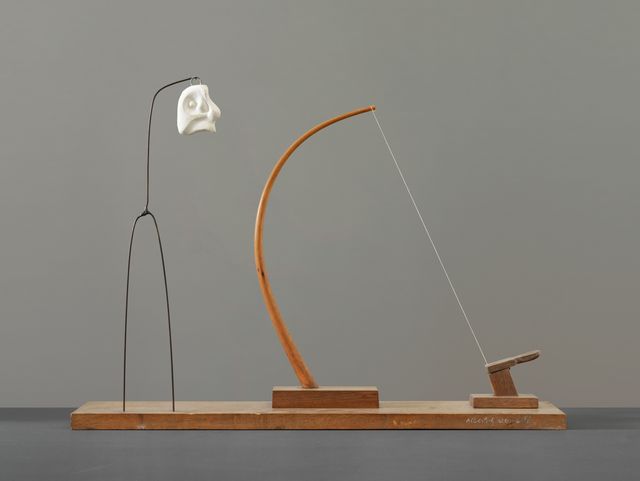 Giacometti had his Surrealist plasters executed in wood by the Basque art carpenter Ipústegi. The gallows with the flower was initially attached at right angles to the longitudinal plane.