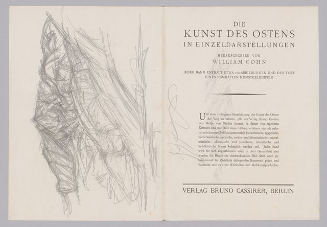 – Above plate 25: copy after plate 24: head of the statue of Chefren, profile (c. 2800 BC. [= Khafre, c. 2520–2494], Cairo), head, very fine, with parallel hachuring, early; Horus falcon with more cursory variant, later.