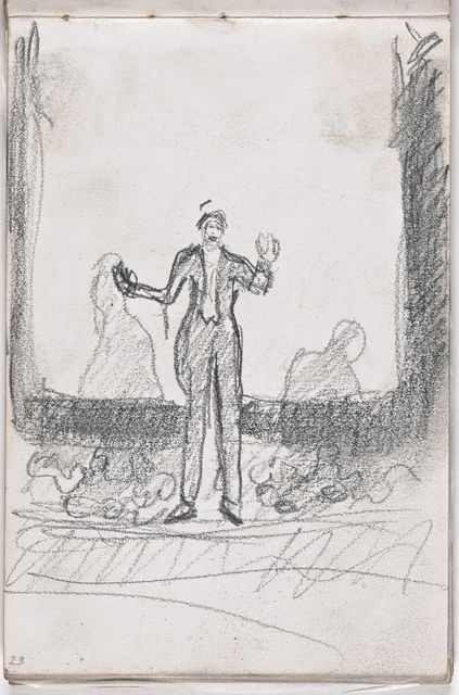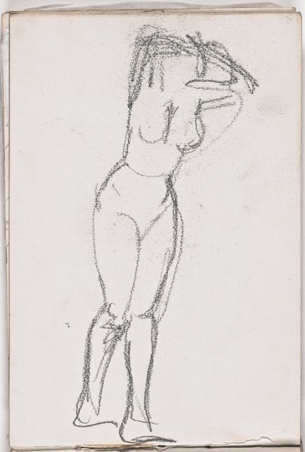 A small sketchbook from the early years in Paris echoes in character the books from Geneva: ephemeral nudes, scenes in cabarets, studies of heads including self-portraits. Little progress seems to have been made, and the ongoing difficulties are evident; it is scarcely conceivable that the familiar, masterfully analytical nude drawings began during this period.