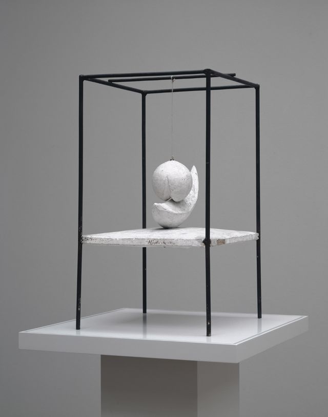 Als André Breton und Salvador Dalí 1930 die «Boule suspendue» entdeckten, waren sie so begeistert, dass sie hier eine neue Art von Dingen, die «Objets à fonction symbolique» postulierten und Giacometti in ihre Surrealisten-Gruppe aufnahmen. Die im Folgenden geschaffenen Skulpturen sind faszinierende, ambivalente Schaumodelle psychischer Vorgänge, die den Obsessionen der Surrealisten entsprechend von Themen der Gewalt und des Eros beherrscht werden.
