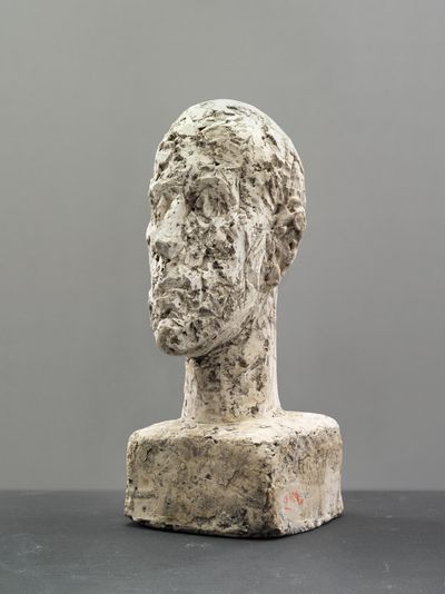 Der Kopf wurde direkt in Plastilin modelliert. Rückseitig unten am Hals ist der Schriftzug «Alberto»
