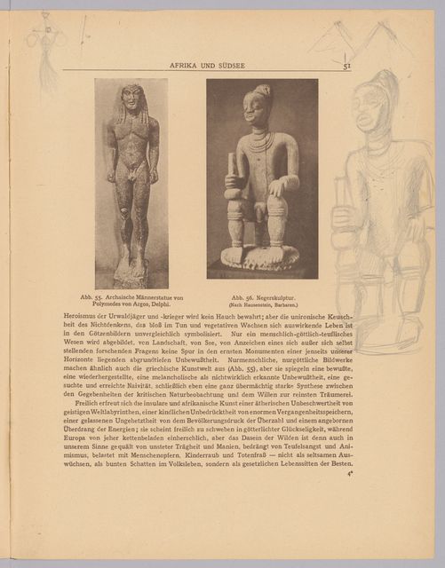 – S. 51: Kopie nach Abb. 56 «Negerskulptur» und Skizze eines Ornaments