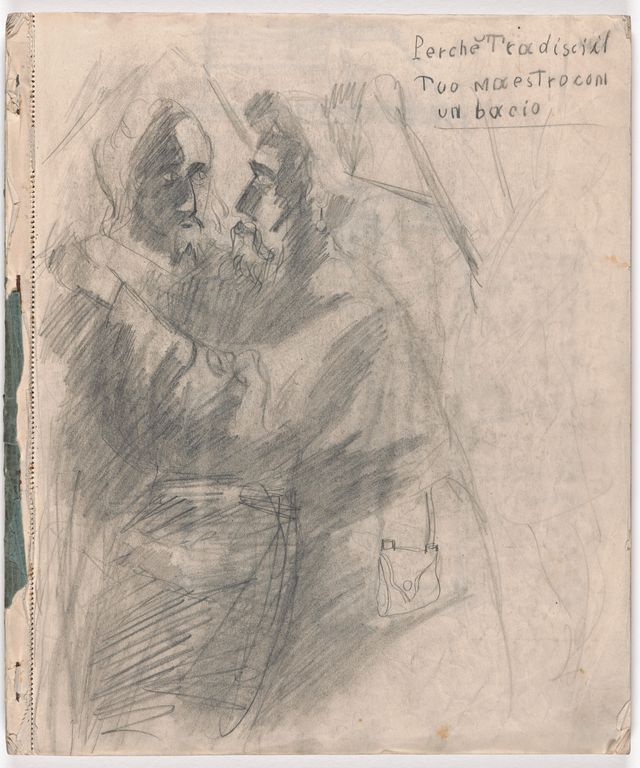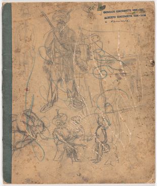 Die frühesten Zeichnungen Giacomettis befinden sich in einem grossen Skizzenblock, auf dessen letzter Seite der Zwölfjährige sein Monogramm und die Jahreszahl 1913 übt.