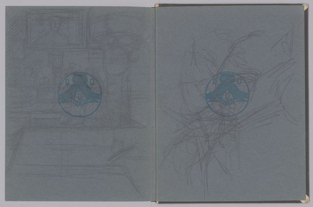 – Auf dem hinteren Vorsatz, linke Seite: Blick über den Tisch, oben rechts die Lampe, auf die Wand des Wohnzimmers in Stampa mit dem Selbstbildnis von Giovanni Giacometti.