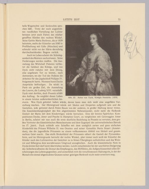 – S. 73: Kopie des Kopfes aus Abb. 53 «Anton van Dyck: Königin Henriette, (1634)», mit blauem Kugelschreiber durchgestrichen.