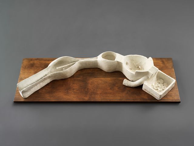 Betrachtet man die Skulptur als organische Einheit von oben, lässt sie sich als liegende Frau deuten. Die Vorstellung, eine Skulptur als «Modell» zu konzipieren ist ebenso bahnbrechend wie die Vorstellung eines architektonischen «Environments», das der Betrachter bei einer Ausführung in Lebensgrösse durchschreiten würde.