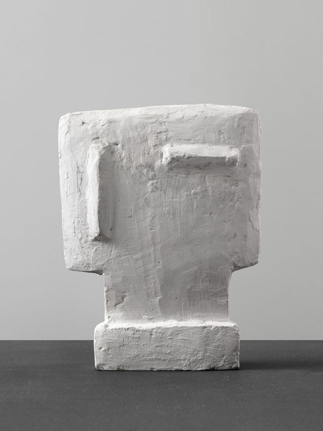 Studie zu der folgenden «Tête qui regarde» (siehe GS 010), die auf der Rückseite noch positiv vorkragende Elemente in der gleichen Verteilung wie die Vertiefungen zeigt.