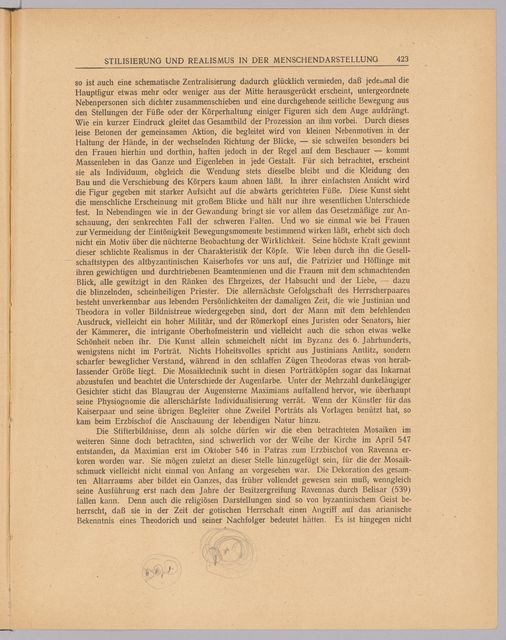 – Skizze auf S. 440 (schwarzer Kugelschreiber): Kopie aus Abb. 374 «Das Opfer Abels, Melchisedeks und Abrahams, Wandmosaik in S. Apollinare in Classe (Ravenna).