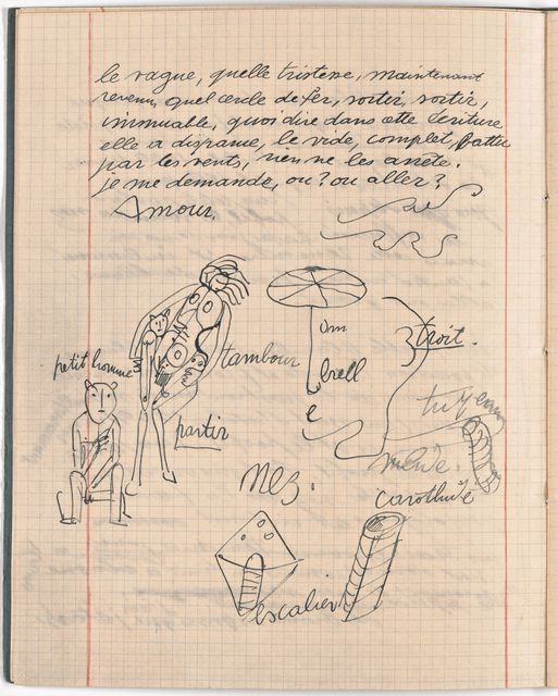 - Feder mit blauschwarzer Tinte; schwarzer Stift: S. 6, 7; blauer Stift: S. 15