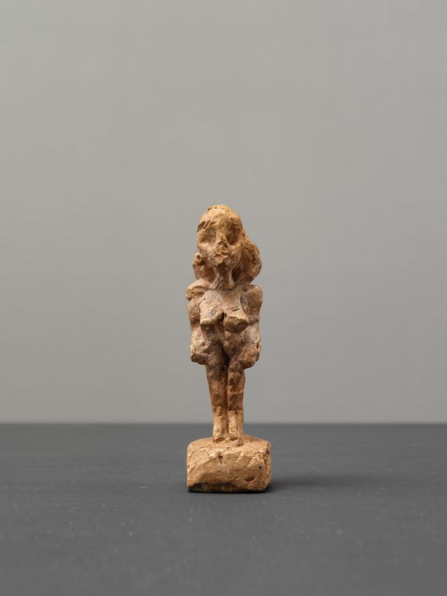 Die Figur entstand als Abguss vom Ursprungsmodell aus Ton oder Plastilin mittels einer zweiteiligen Gipsnegativform (verlorene Form). Anschliessend wurde die Oberfläche von Giacometti durch Antrag von Gips geringfügig weiter überarbeitet. An der Hinterseite der Standfläche befindet sich die mit blauem Kugelschreiber aufgetragene Beschriftung «N° I», an der Unterseite die mit Bleistift vorgezeichnete Gravur «I».