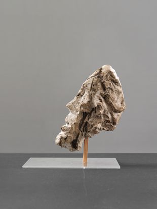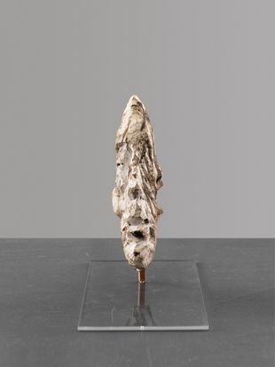 Der Kopf entstand als Abguss vom Ursprungsmodell aus Ton mittels einer Gipsnegativform (verlorene Form). Anschliessend wurde die Oberfläche von Giacometti durch Abtrag von Gips bearbeitet sowie mit einigen Pinselstrichen schwarz und rot-braun bemalt. Eine in den Halsansatz mit eingegossene Eisenstange, die das Objekt ursprünglich wohl zu einer «tête sur tige» gemacht hat, fehlt heute.