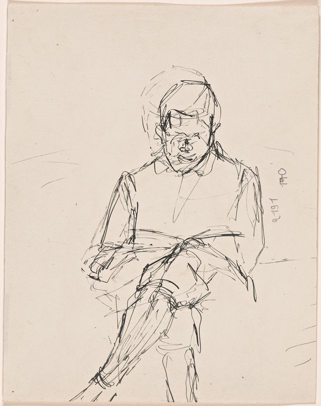 Frontal sitzender Jüngling beim Lesen, 1918 Material Feder mit Tinte auf Papier Dimensionen 25.4 x 19.9 cm Creditline Kunsthaus Zürich, Alberto Giacometti-Stiftung, 1981 Inventarnummer GS 157.verso Signatur nicht bezeichnet Provenienz