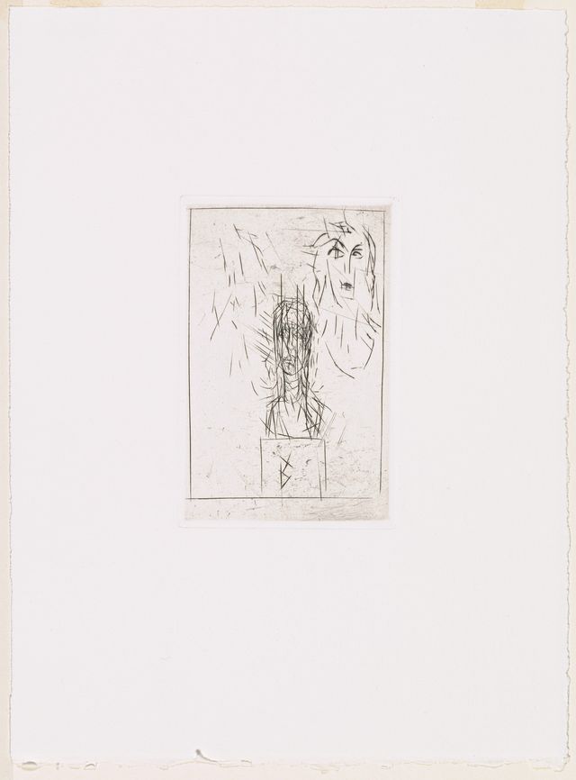Das Blatt ist eine Vorarbeit für eine Radierung zu Georges Batailles«Histoire de rats» (Paris, Editions de Minuit, 1947).