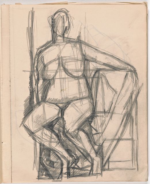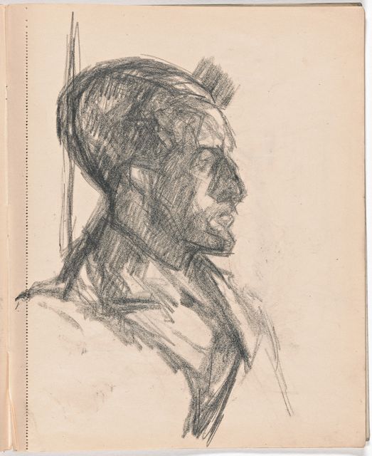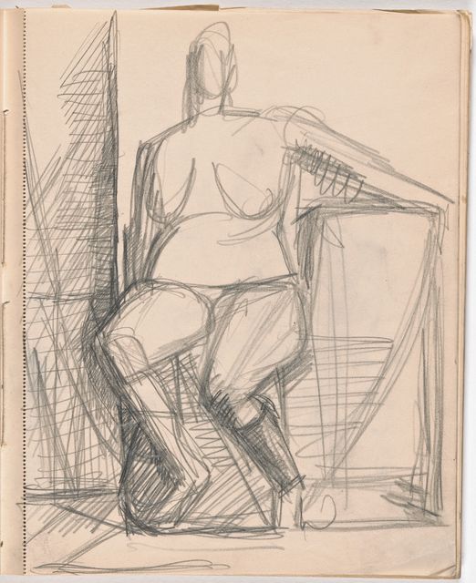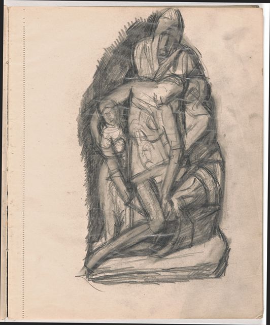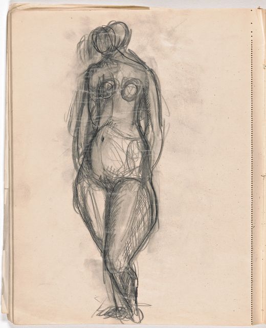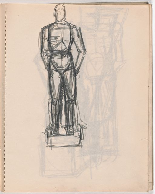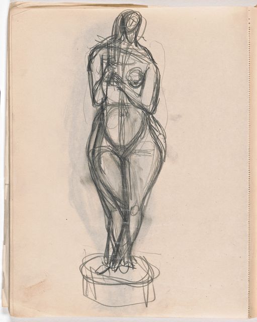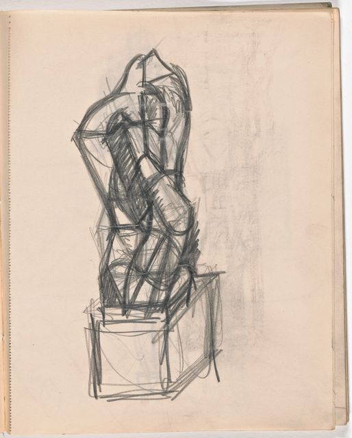 Dieser Skizzenblock dokumentiert Giacomettis Aufbruch zur Avantgarde-Kunst. Als Alternativen zum freien Künstlertum scheint in sorgfältig trockenen Aufrissen von konventionellen Monumenten kurz eine Zukunft als kunsthandwerklicher Grabstein-Bildhauer auf. Die Akte sind nun grossformatig stilisiert; wesentlich sorgfältiger ausgearbeitet sind die Studien nach mesopotamischen Rollsiegeln, nach Fernand Léger, Marcel Gromaire, Pablo Picassos grosser Figur aus dem Umkreis der «Demoiselles dʼAvignon» sowie nach Michelangelos «Pietà» aus dem florentiner Dom.