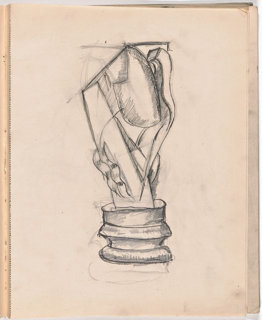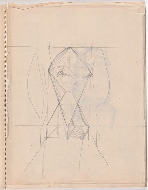 Bemerkenswerterweise führen diese Studien zu Entwürfen für abstrakte, organisch-postkubistische Skulpturen. Unerwartet steht eine Kopie nach einer präkolumbianischen Figur am Anfang von Skizzen, aus denen sich die «Femme cuillère» entwickelt (siehe GS 004).