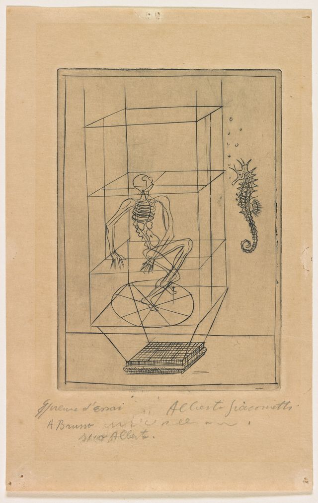 - bez. u. l. mit Grafitstift: Epreuve dʼessai; u. r. mit Grafitstift: Alberto Giacometti; darunter mit Grafitstift: A Bruno [...] / suo Alberto.